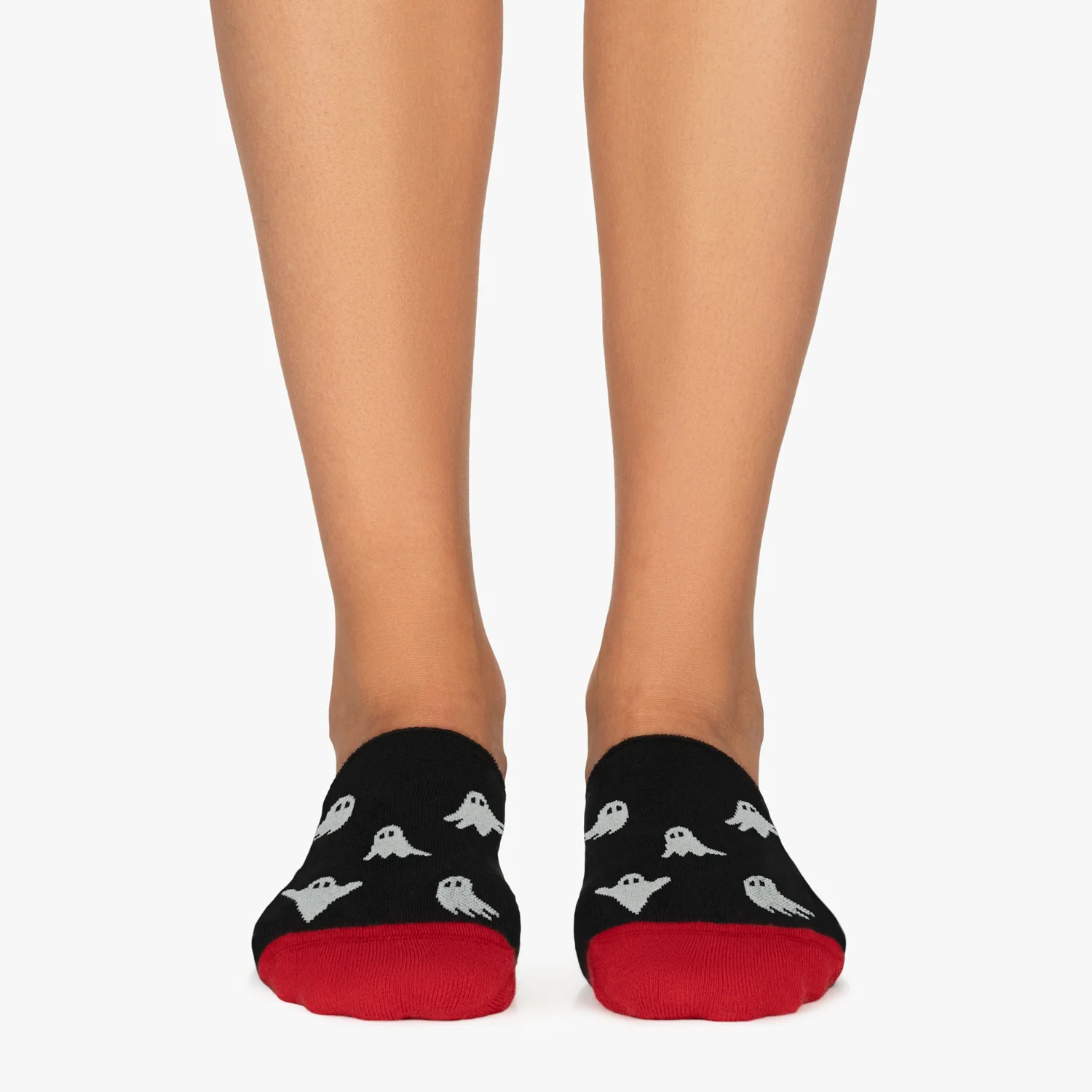 ¿Eres de los que les gustan las películas de terror y no tiene miedo a los fantasmas? Entonces, estos calcetines invisibles son perfectos para ti. Llenos de sorpresas, tus pies no podrán resistirse a ellos. Su color negro de fondo hace resaltar el divertido diseño del fantasma y los convierte en una prenda esencial en tu armario. ¡Hazte con ellos antes de que desaparezcan!